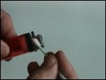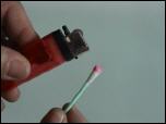 Mit diesem Wattestäbchen wird nun auf dem Test- objekt (hier der Metall- kopf eines Feuerzeuges)